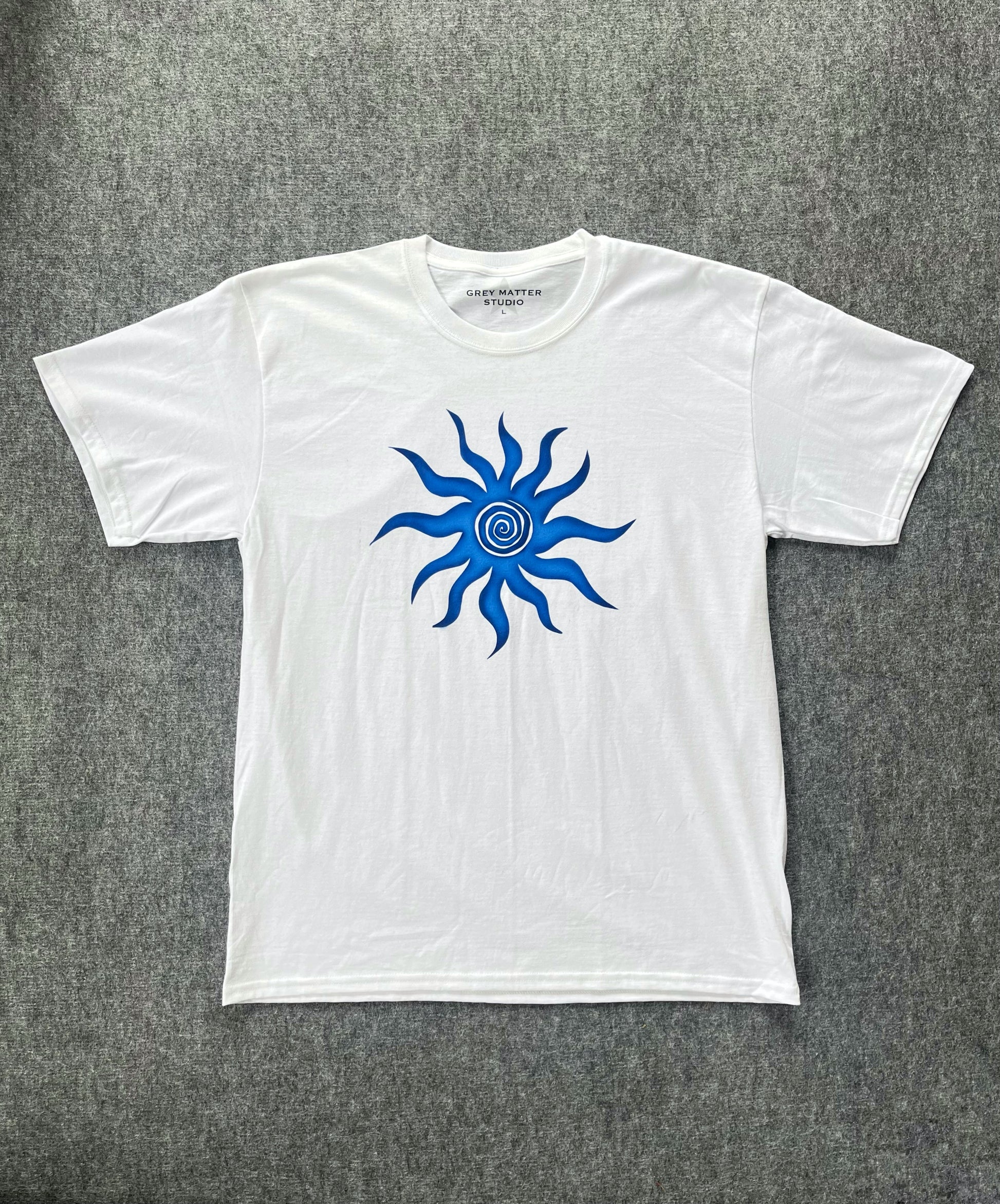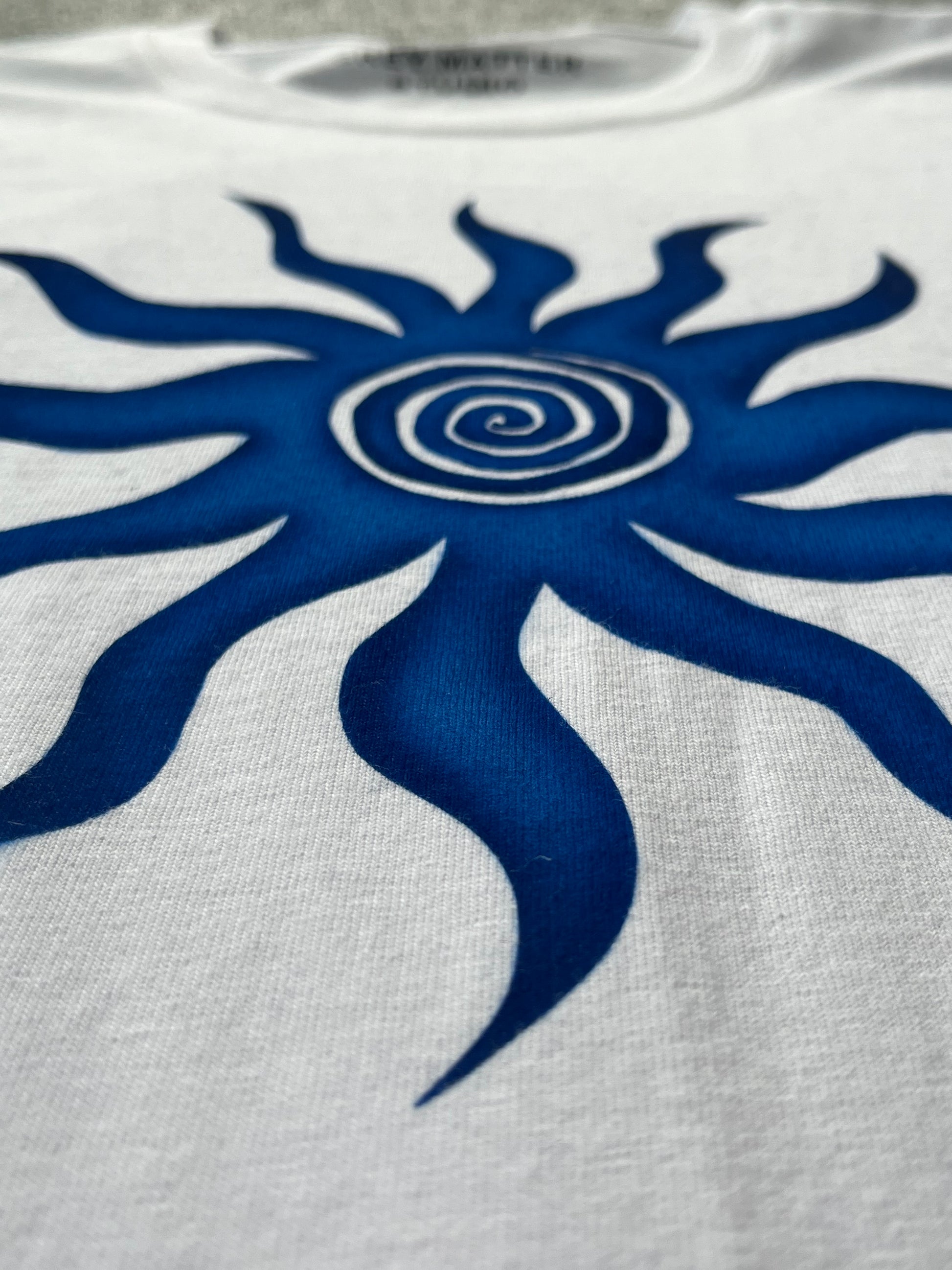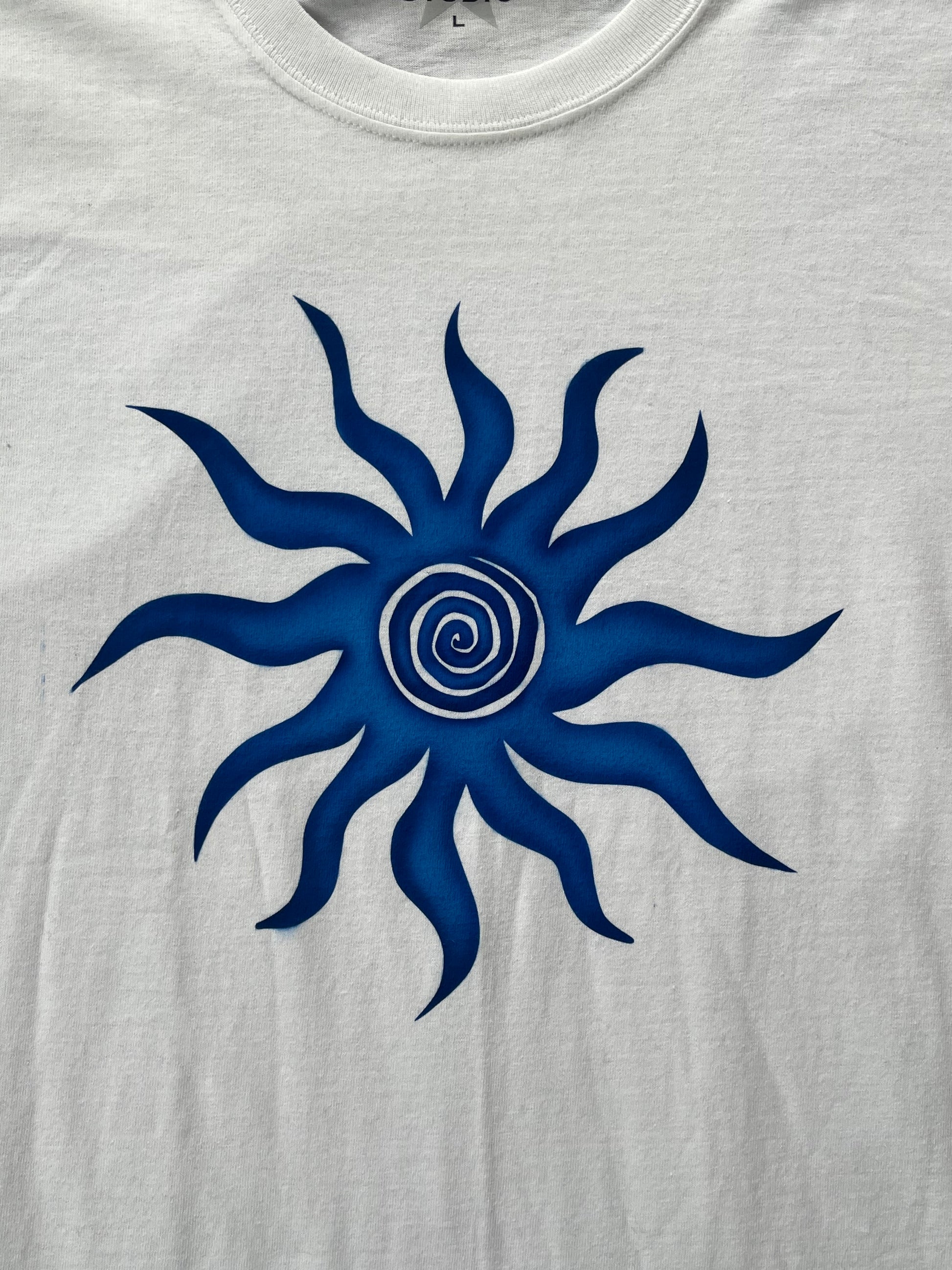 Each tee is individually airbrushed by hand, resulting in a one-of-a-kind piece. Variations in color and patterns are inherent due to the handcrafted nature of the painting process.